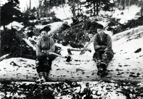 Illustrasjonsbilde: Gustav og Peder Hilmo på skogsarbeid ca 1937.